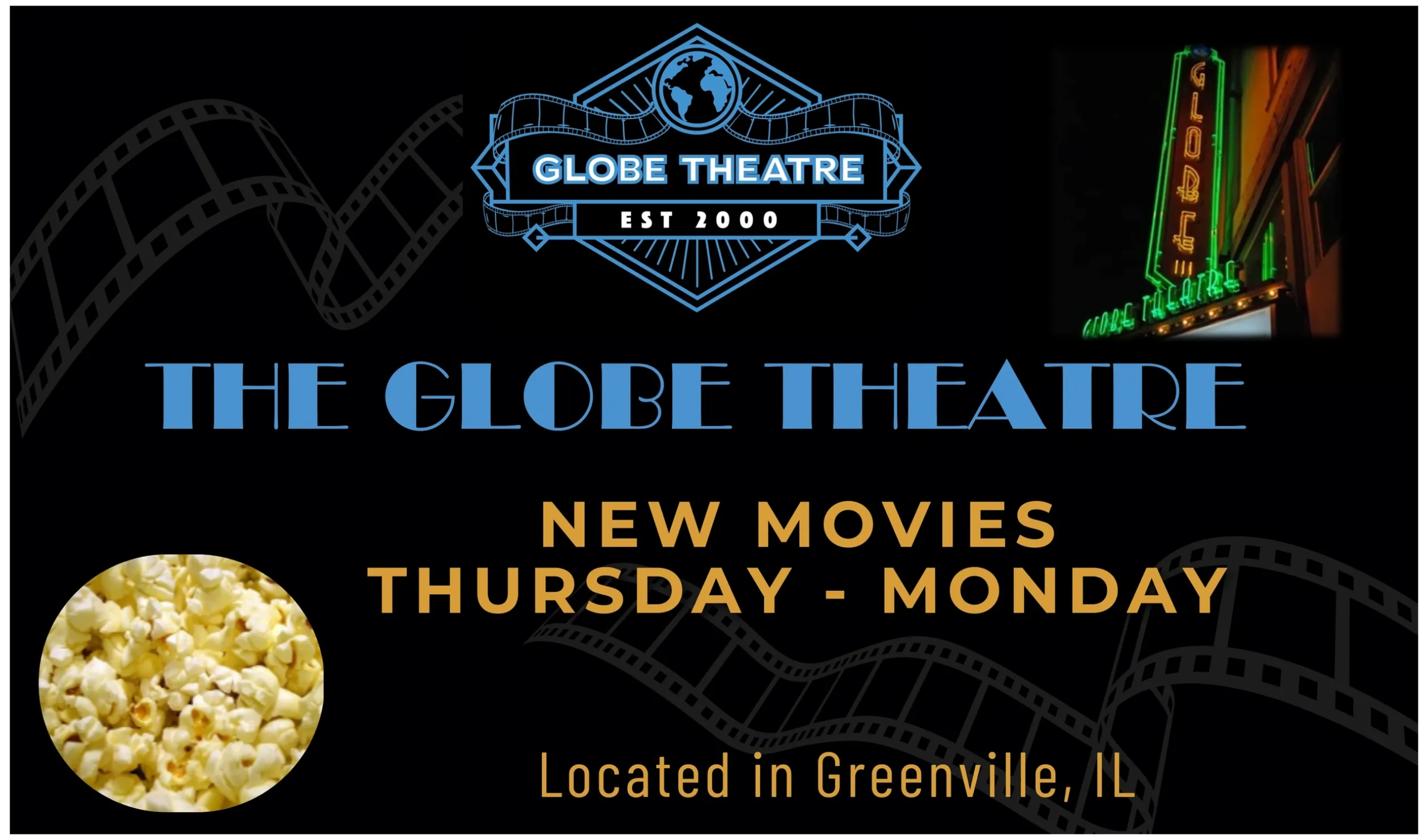At The Globe Theatre in Greenville, IL, we pride ourselves on offering an exceptional movie-going experience. With three screens and showing the latest first-run films, there's something for everyone to enjoy at our local theater!